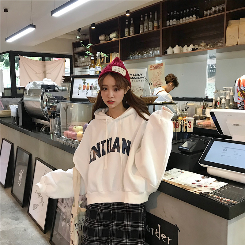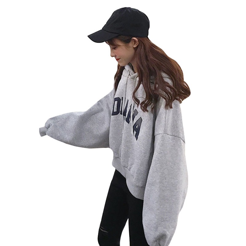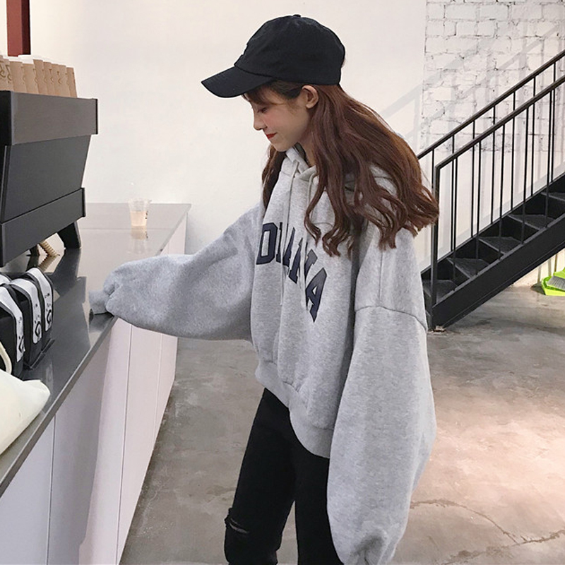 2018新款秋季韓版原宿風字母寬松加絨連帽套頭超火衛衣上衣外套女