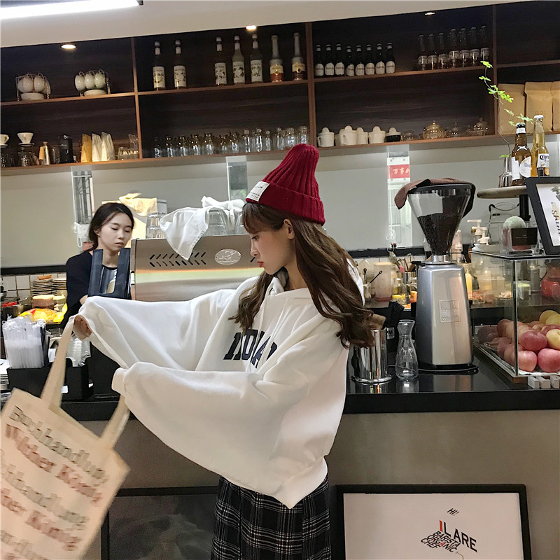 / 2018新款秋季韓版原宿風字母寬松加絨連帽套頭超火衛衣上衣外套女