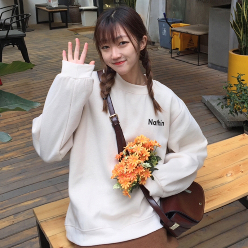 / 秋冬新款女裝韓版字母印花套頭加絨衛衣外套學生寬松休閑長袖上衣