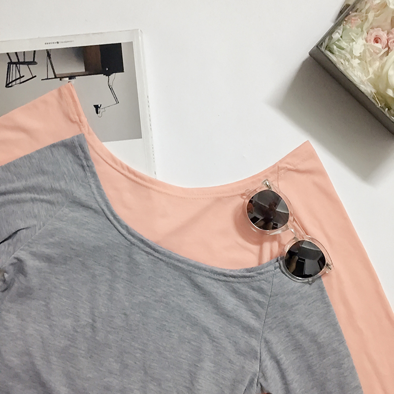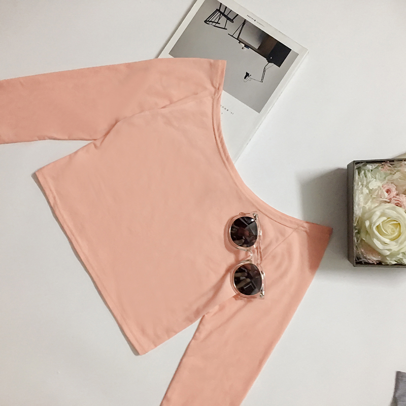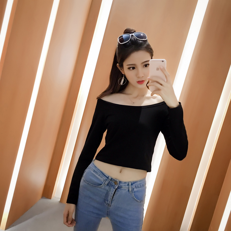 / 秋裝新款修身一字肩短款打底衫上衣女裝韓版套頭百搭長袖顯瘦T恤