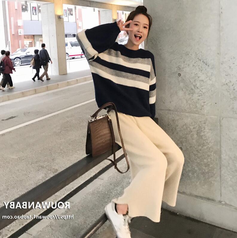 1317駝粉條紋上衣+黑色下裝|1317藍色條紋上衣+米白色下裝