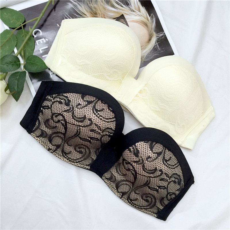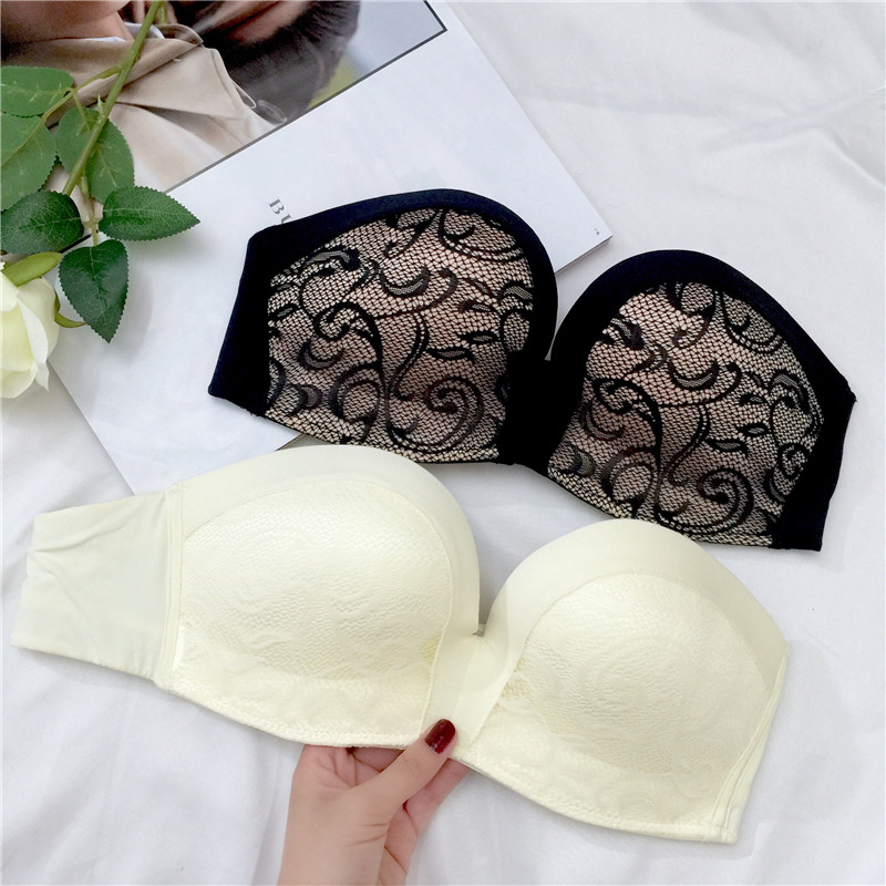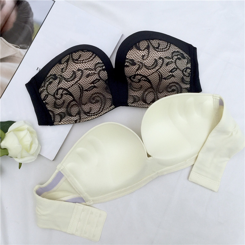 防滑文胸無肩帶隱形聚攏薄款半杯無鋼圈一片式無痕婚紗內衣抹胸女