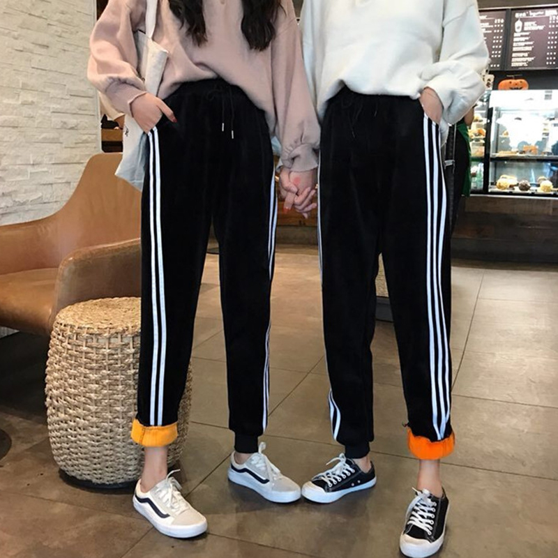 / 閨蜜裝運動褲女2018秋冬新款韓版加絨哈倫褲學生高腰寬松休閑長褲