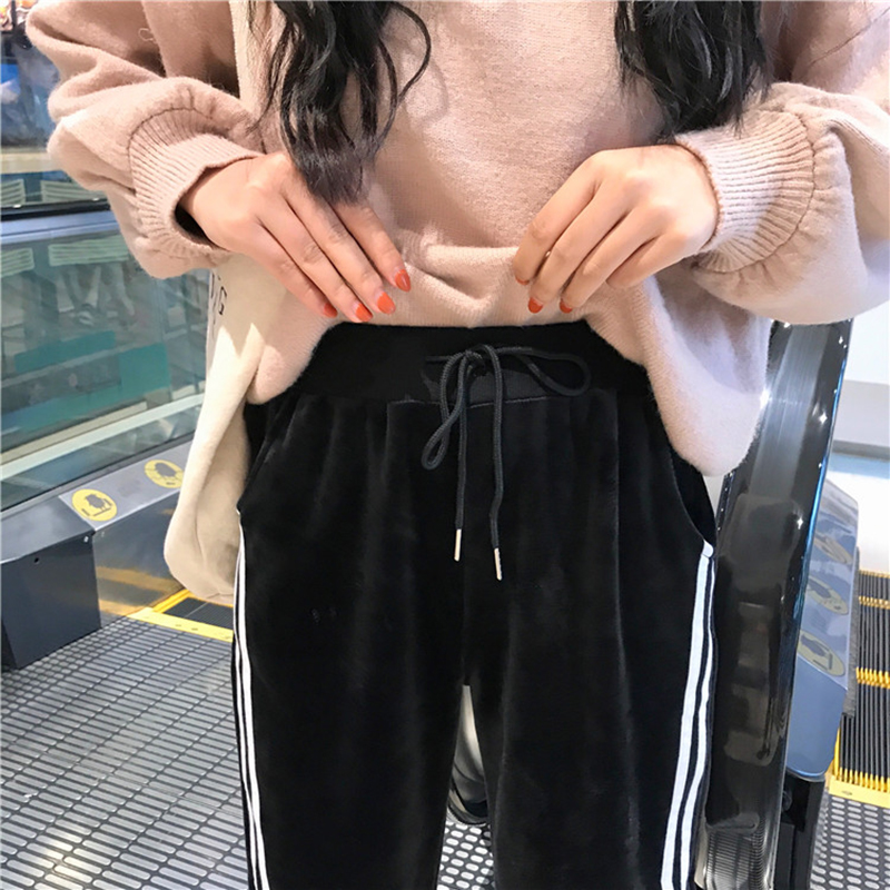 閨蜜裝運動褲女2018秋冬新款韓版加絨哈倫褲學生高腰寬松休閑長褲