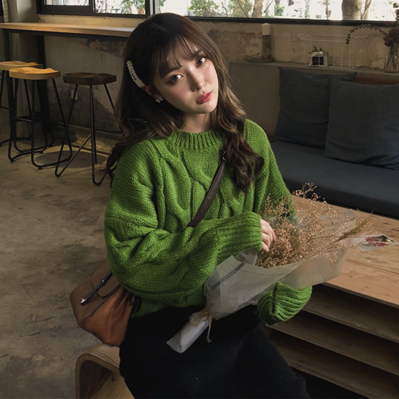 慵懶風麻花套頭毛衣外套女秋冬裝2018新款韓版百搭寬松長袖針織衫