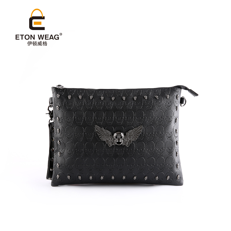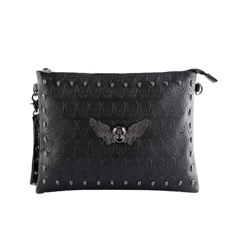 韓版鬼頭手拿包骷髏手抓手包單肩包ipad包文件包鉚釘潮男手拿包