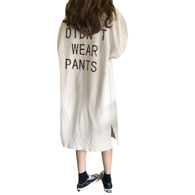 / 秋季女裝韓版后背字母長袖T恤寬松中長款套頭衛衣顯瘦連衣裙長裙
