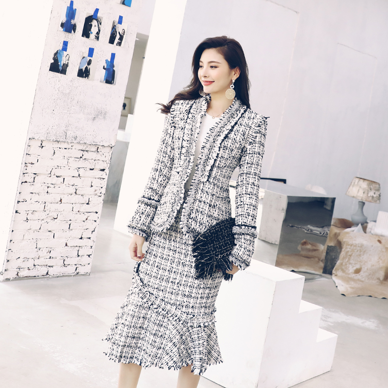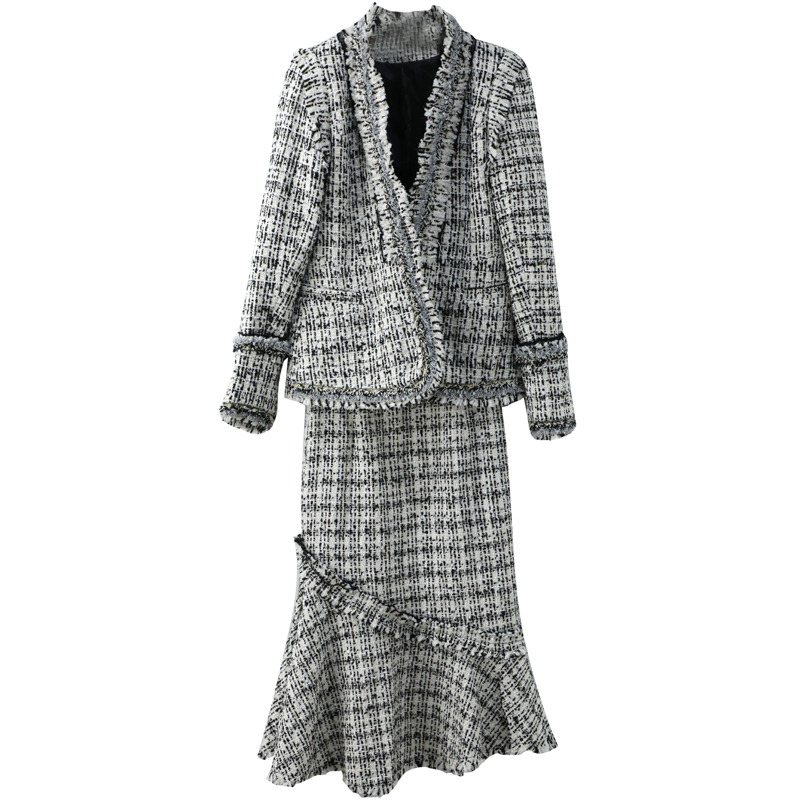 / 女神套裝女2018秋冬新款名媛氣質復古花呢外套毛呢魚尾半身裙子