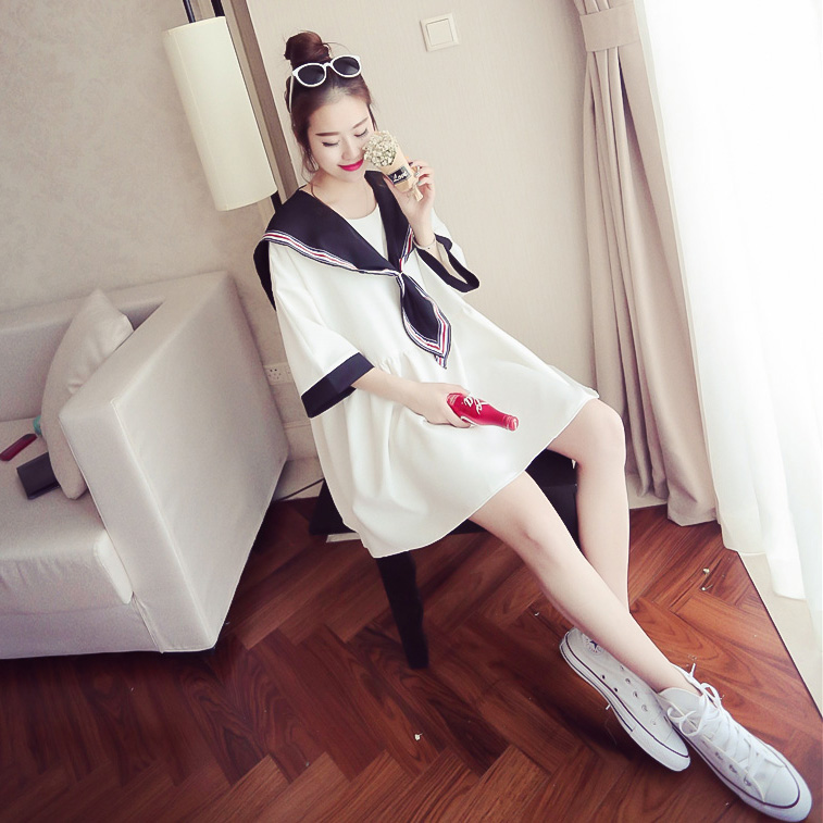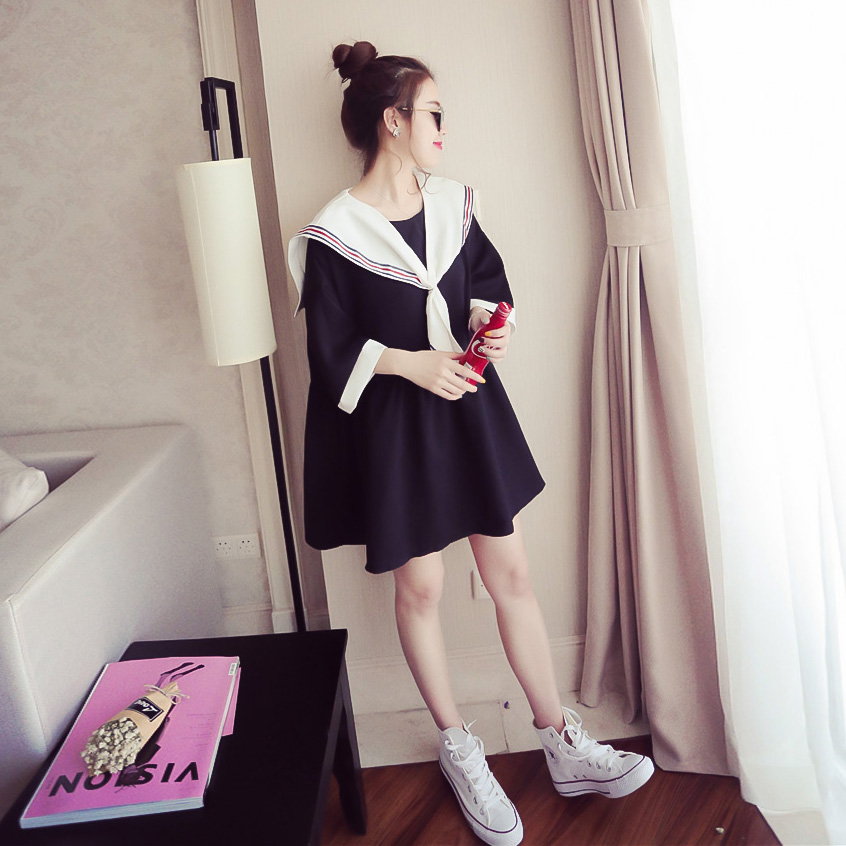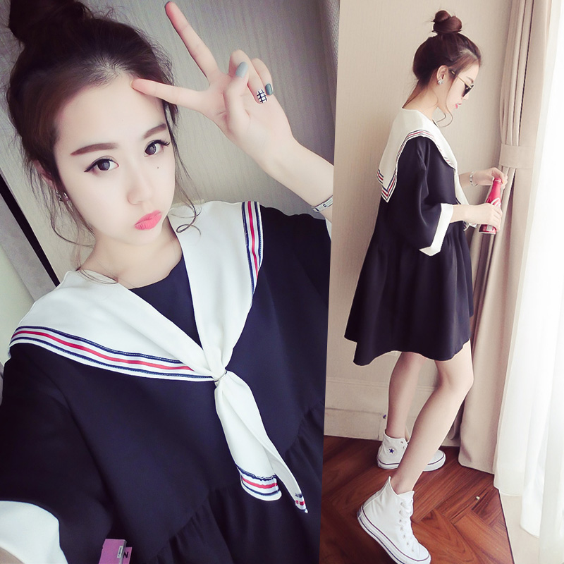 / 韓國ulzzang連衣裙女閨蜜裝夏海軍風原宿裙子學生韓版學院風日系