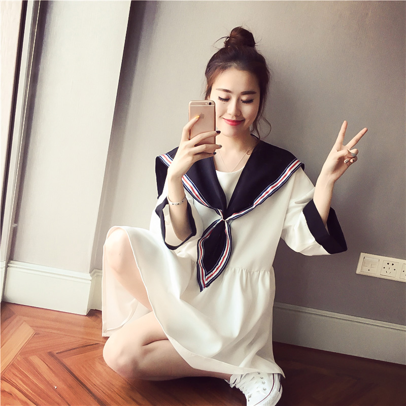 韓國ulzzang連衣裙女閨蜜裝夏海軍風原宿裙子學生韓版學院風日系