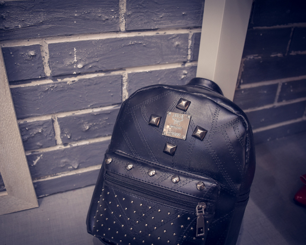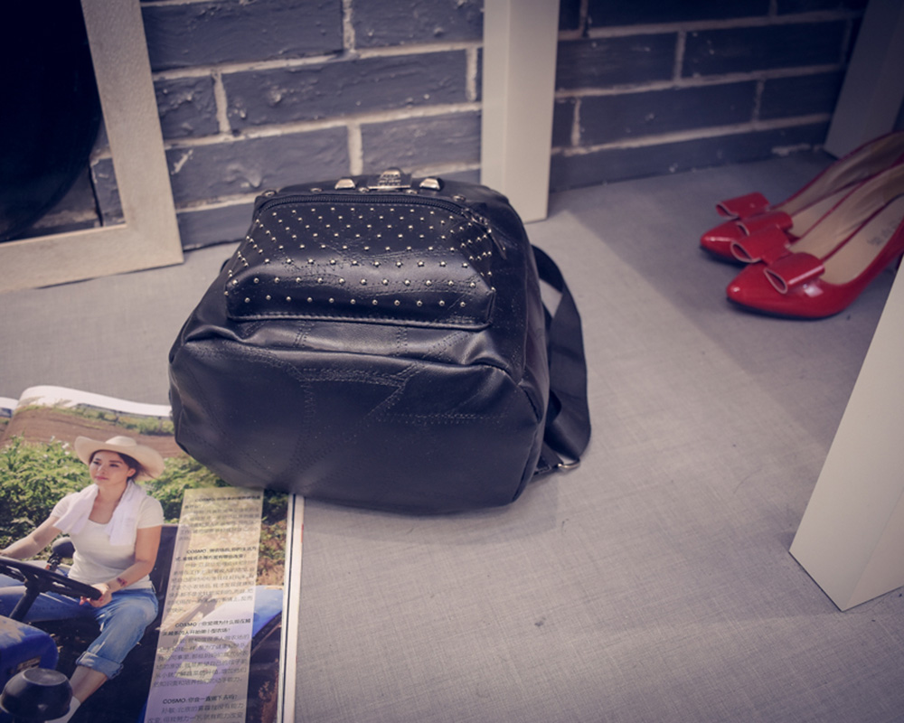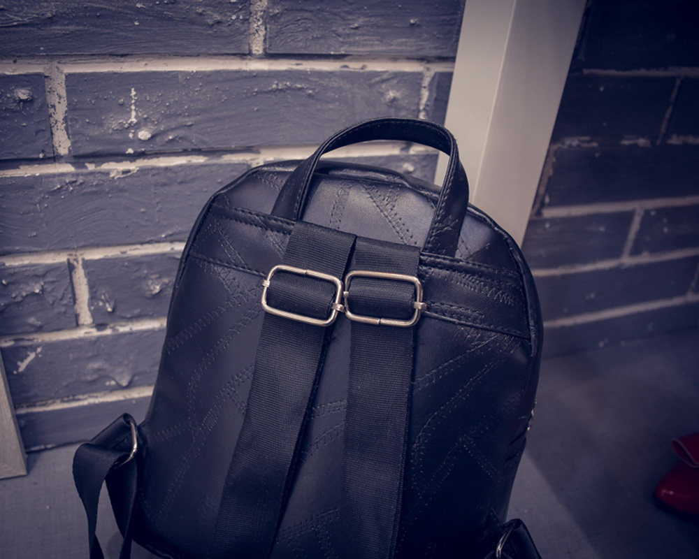 2076新款時尚pu拼接鉚釘雙肩包 韓版潮流小雙背女包休閑女小背包