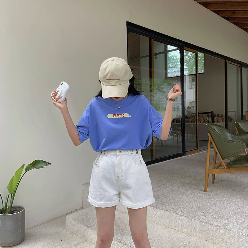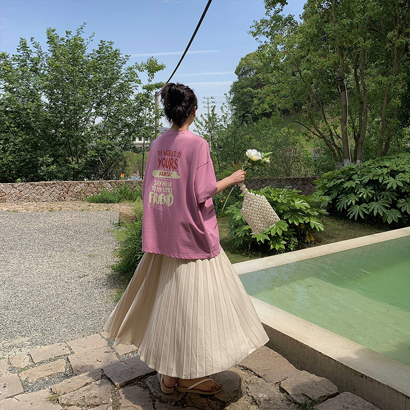 這件T恤前后都有印花 胸前字母印花小巧而有趣
