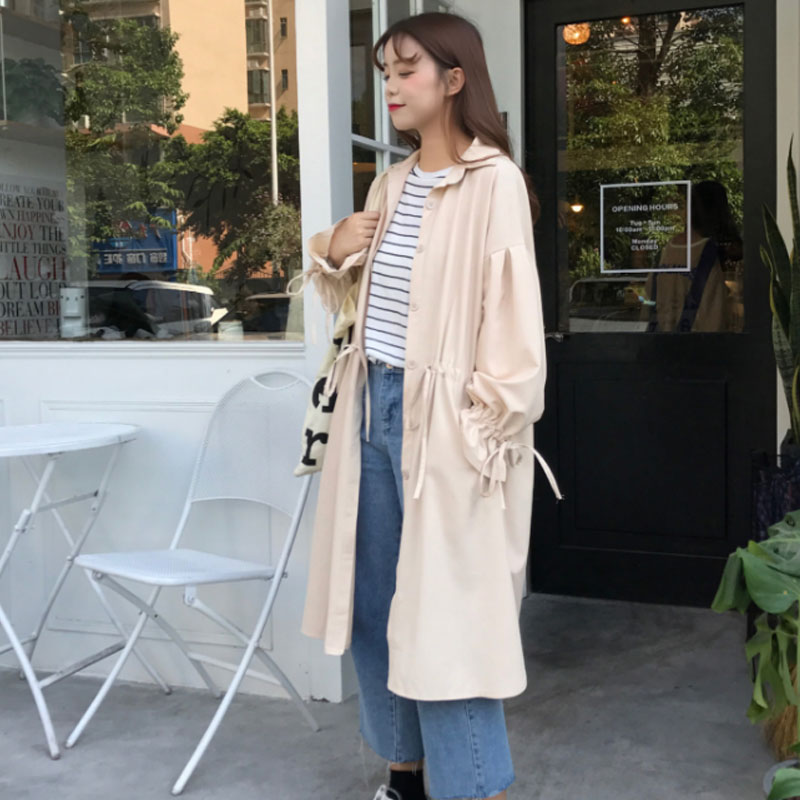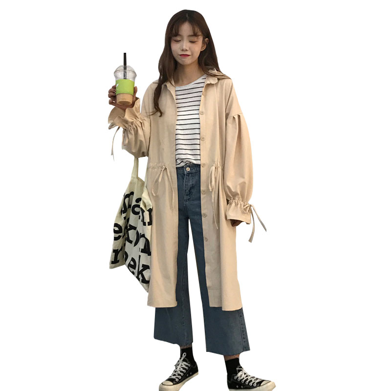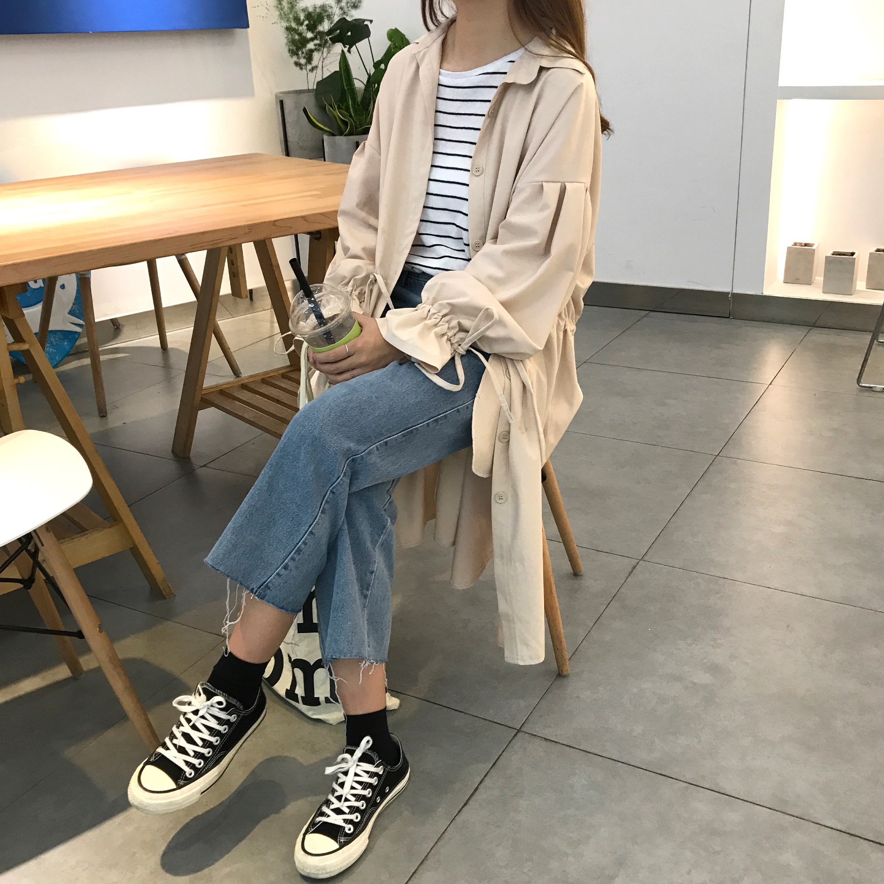 / 秋季女裝韓版氣質寬松中長款襯衣百搭休閑長袖過膝風衣上衣外套潮