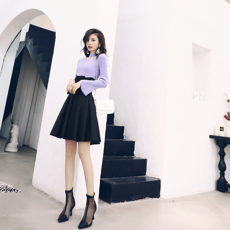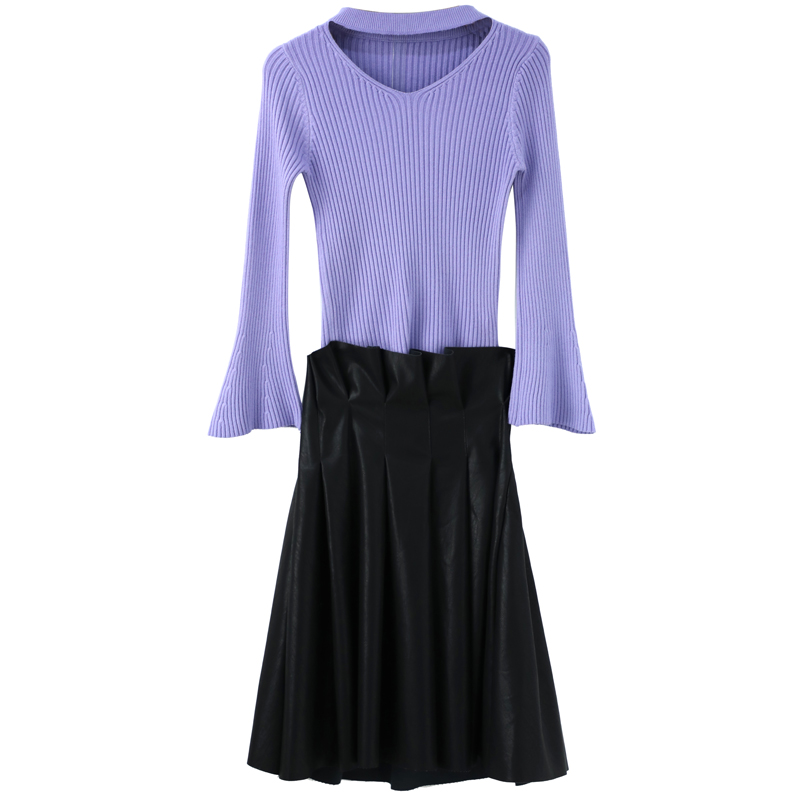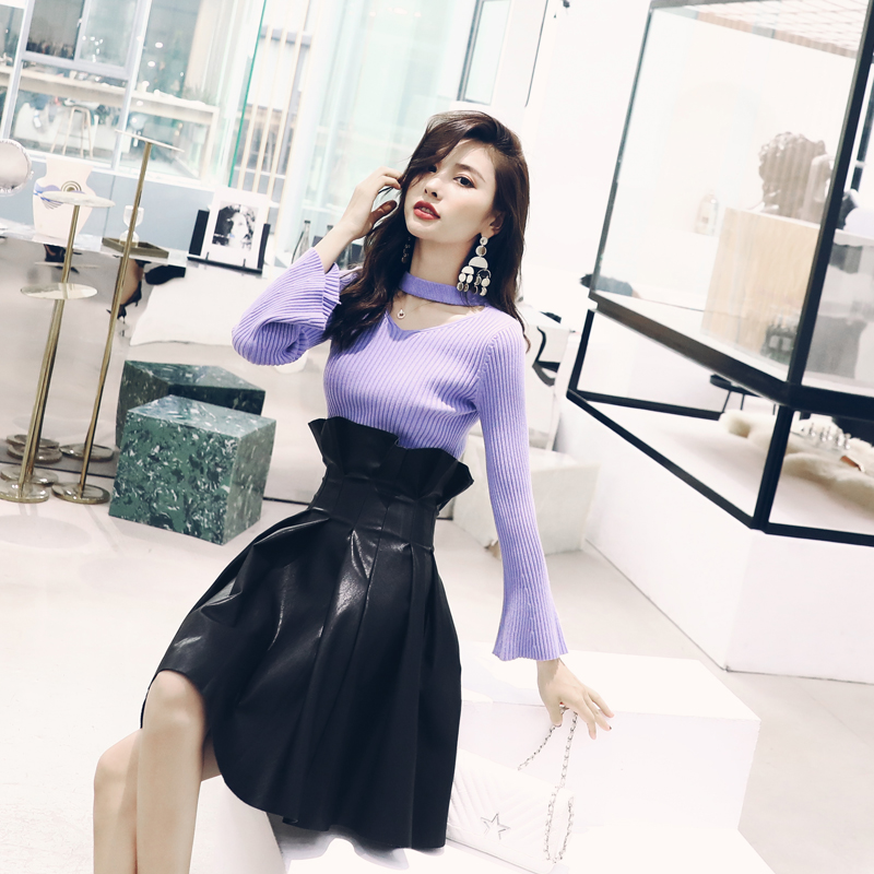 / 名媛氣質2018秋冬季高腰皮裙女針織打底衫網紅半身裙洋氣兩件套裝