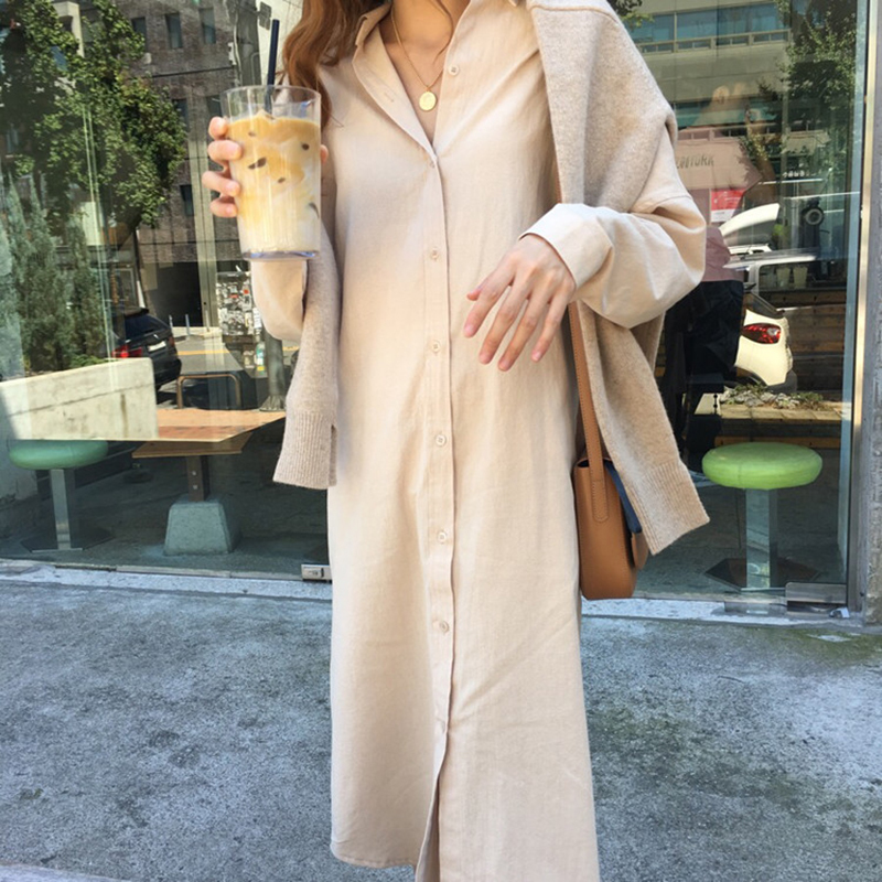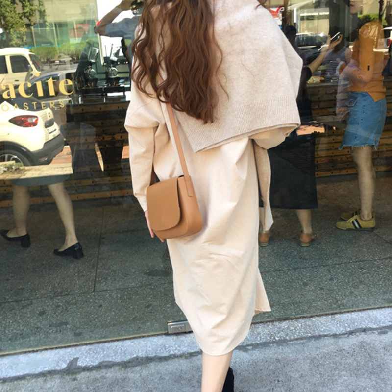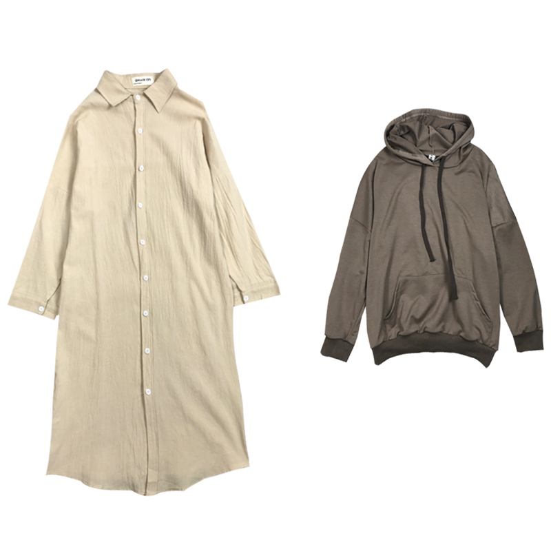 / 早秋兩件套女裝新款寬松長袖時尚連帽衛衣學生中長襯衫式連衣裙子