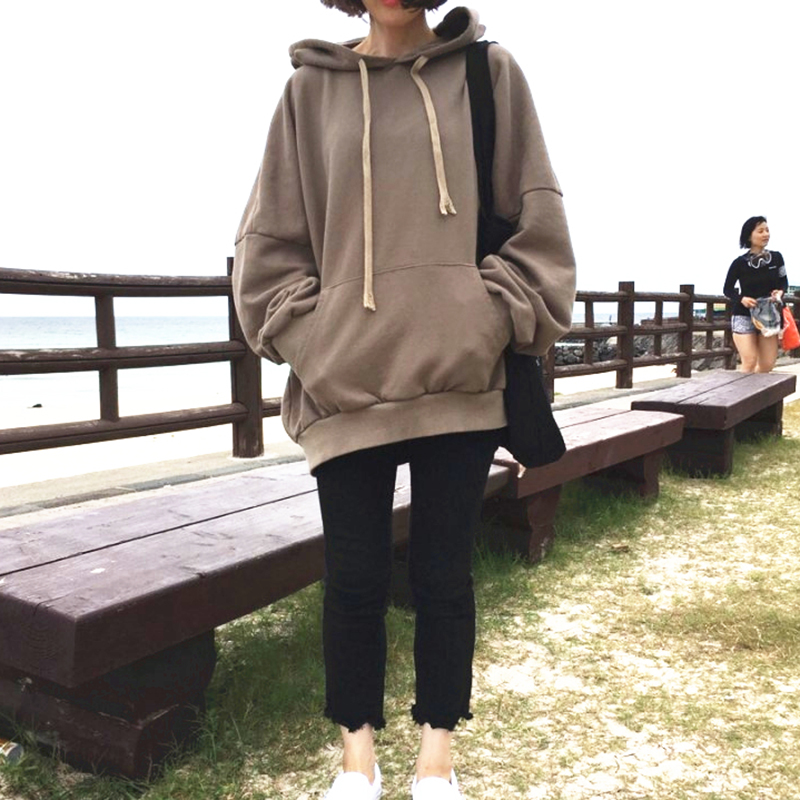 早秋兩件套女裝新款寬松長袖時尚連帽衛衣學生中長襯衫式連衣裙子