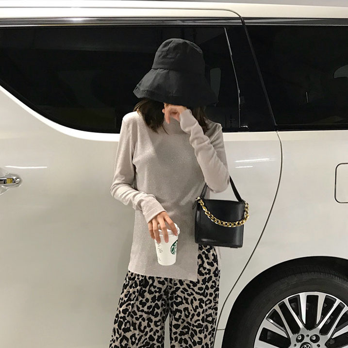 / 秋季套裝女時尚兩件套顯瘦閃閃開叉打底長袖T恤+絨面豹紋休閑長褲