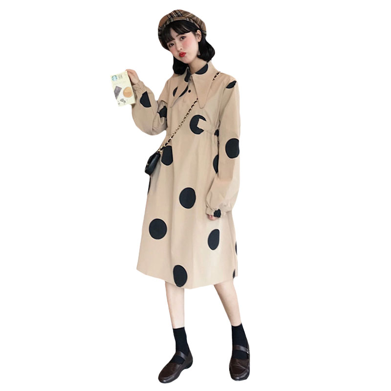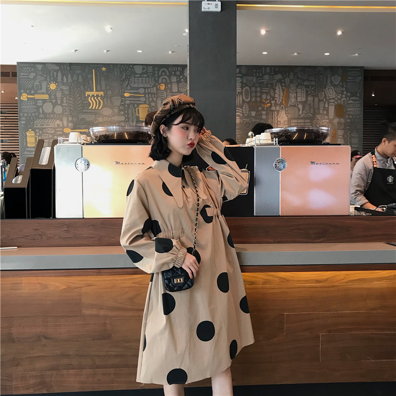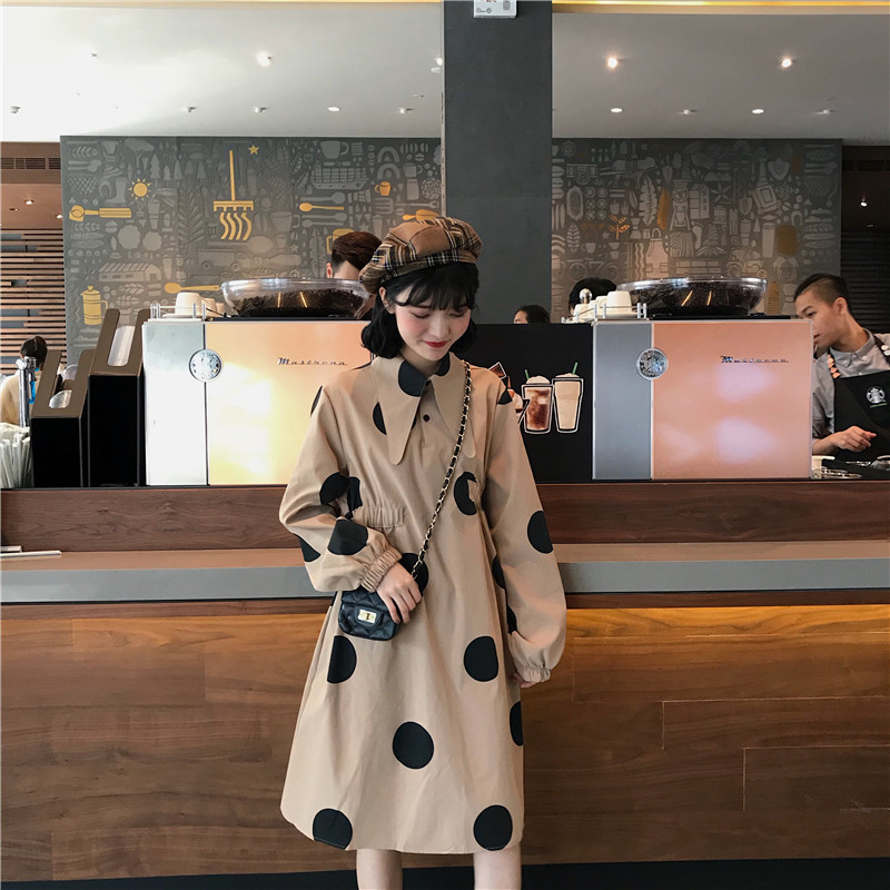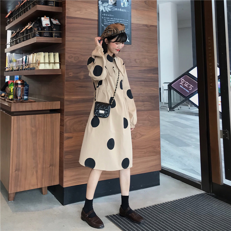/ 2018新款秋冬韓版中長款chic復古氣質大波點連衣裙長裙學生裙子女