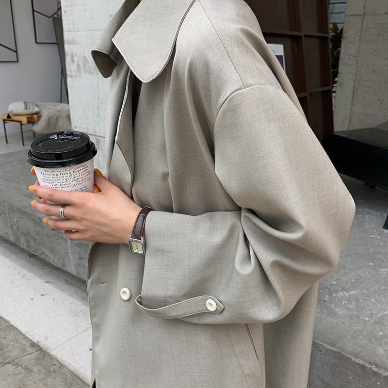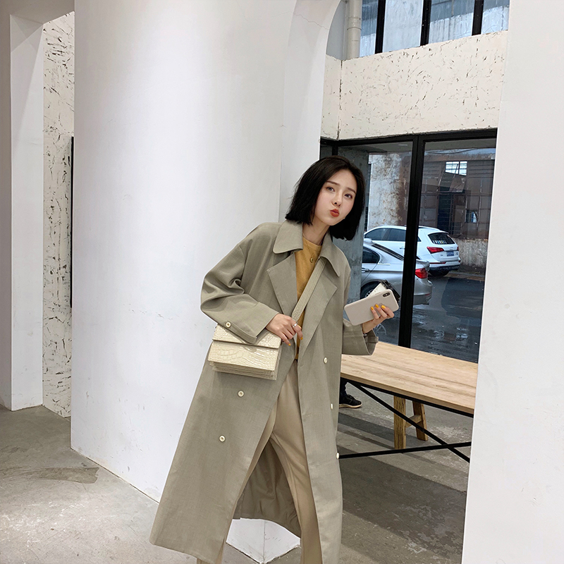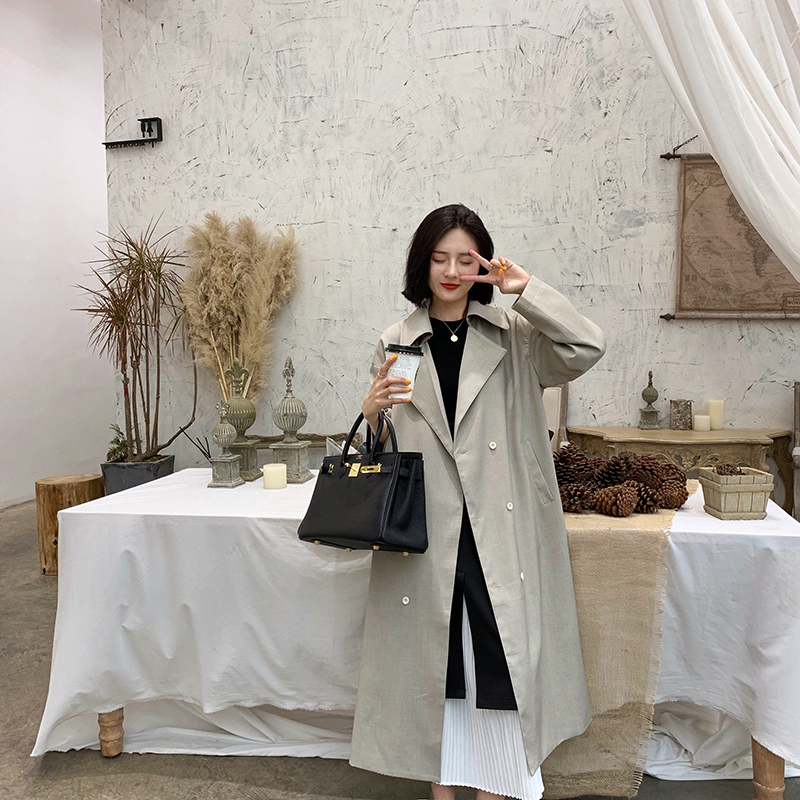 A7seven風衣女雙排扣春秋新款長款過膝韓版寬松顯瘦長袖純色外套