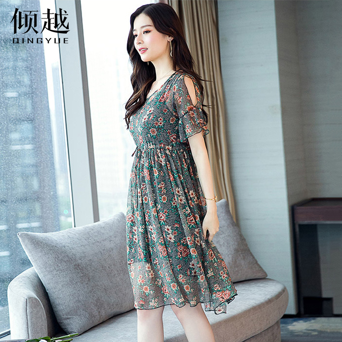 碎花雪紡連衣裙女長裙2017夏季新款時尚氣質韓版顯瘦中長款大擺裙