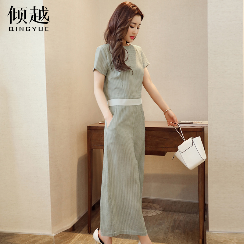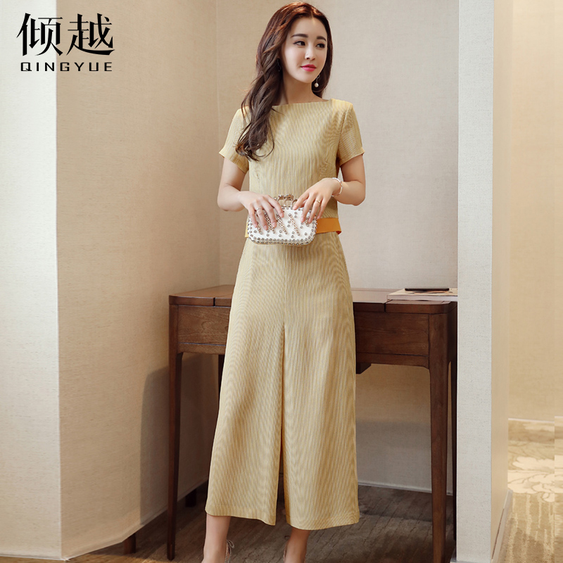 傾越2017夏季新款套裝純色氣質時尚圓領短袖寬松九分褲T恤兩件套