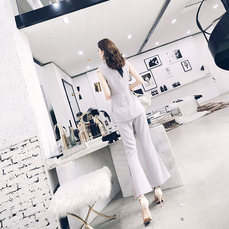 / 2018夏季新款時髦洋氣名媛氣質職業釘珠上衣開叉闊腿褲套裝兩件套