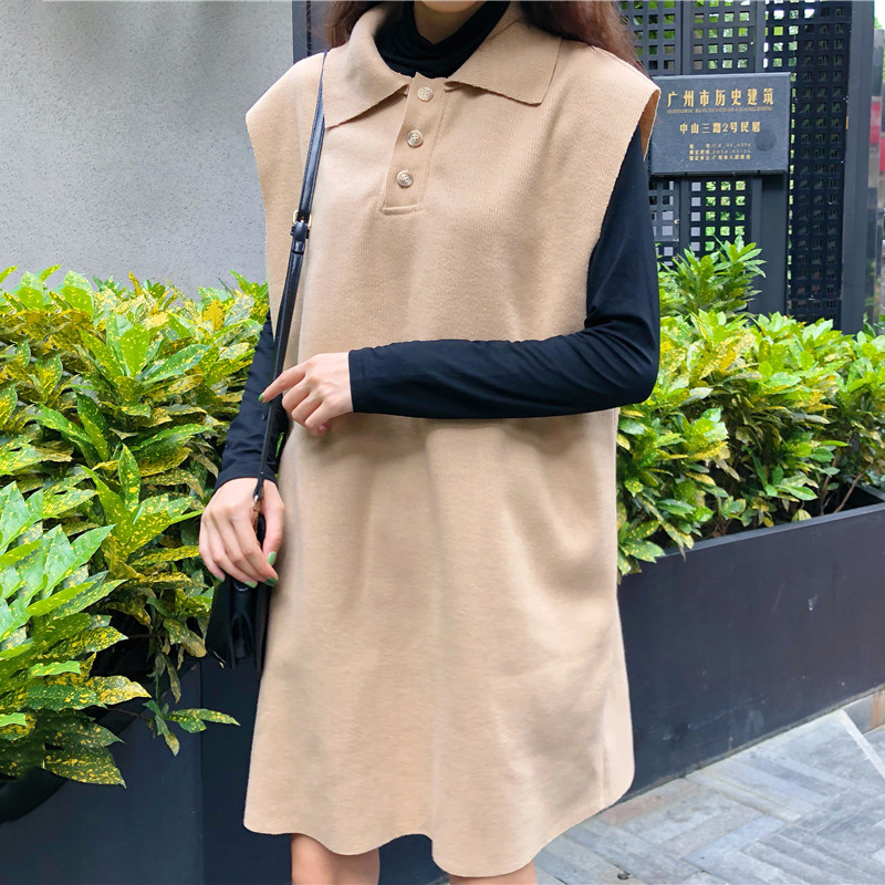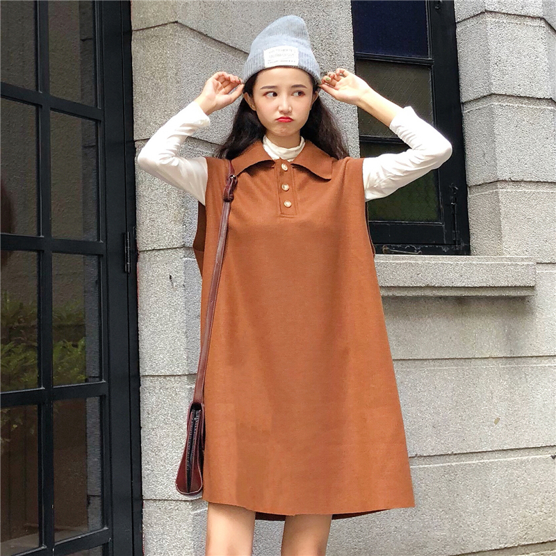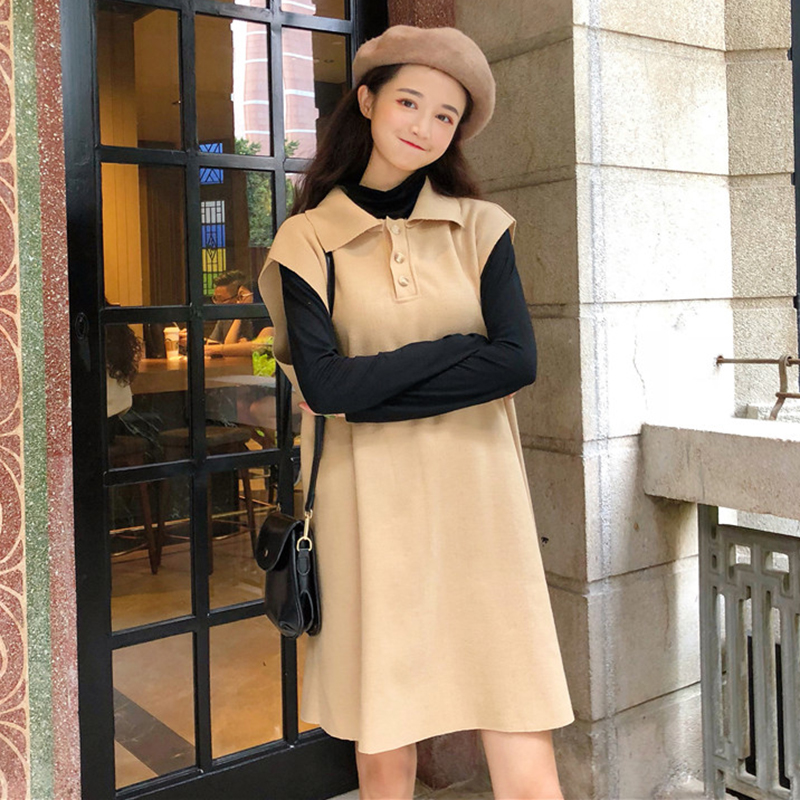 / 早秋新款寬松背心馬甲連衣裙女學生韓版長袖T恤打底上衣兩件套裝