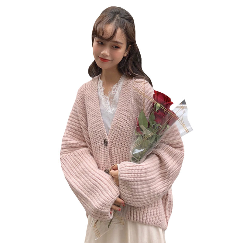 秋冬女裝韓版chic慵懶風寬松網紅毛衣針織衫開衫外套+打底連衣裙