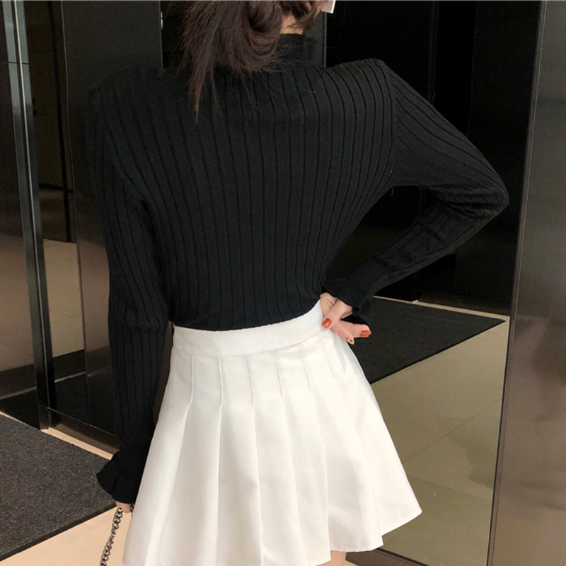 / 秋冬裝2018新款系帶半高領打底針織衫女修身顯瘦長袖白色時尚上衣