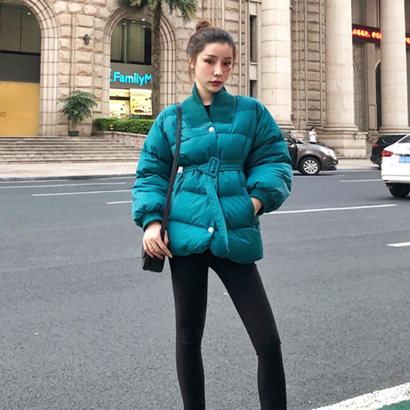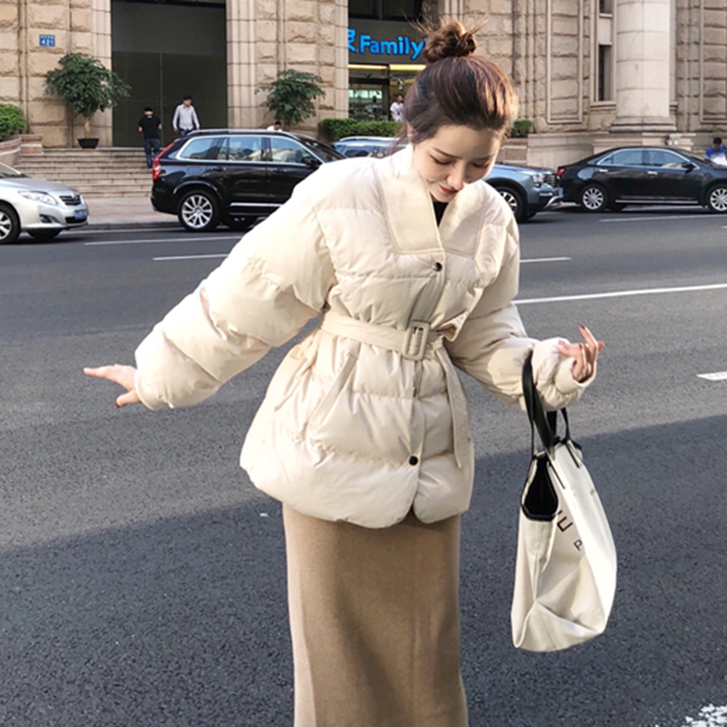 / 時尚收腰顯瘦黑色棉衣外套冬裝女新款寬松長袖面包服學生休閑棉襖