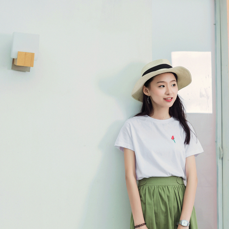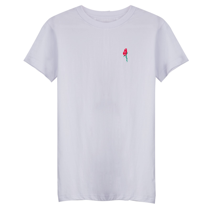 / 夏裝新款上衣短袖t恤女純白色修身玫瑰花刺繡打底衫半袖百搭
