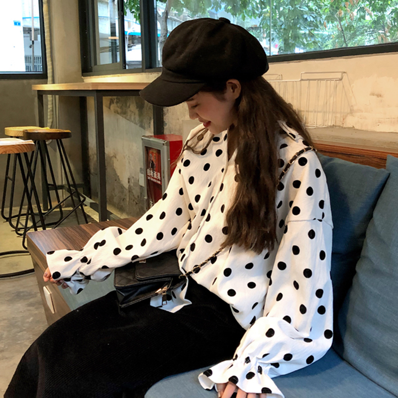 / 秋冬女裝2018新款燈芯絨寬松氣質波點襯衫時尚雙層領長袖外套上衣