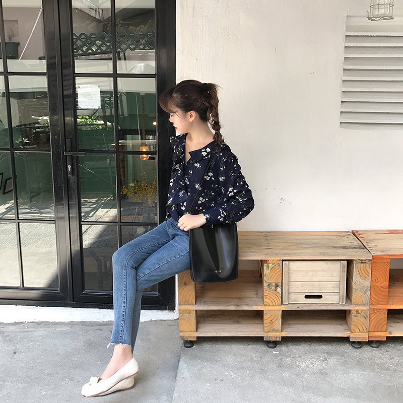 / 春裝女裝韓版高腰百搭修身顯瘦毛邊牛仔褲鉛筆褲淺藍色小腳褲學生