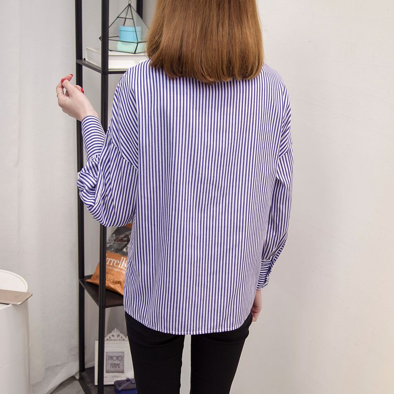 襯衫女長袖寬松韓版百搭休閑條紋襯衣女裝春裝新款潮學生上衣