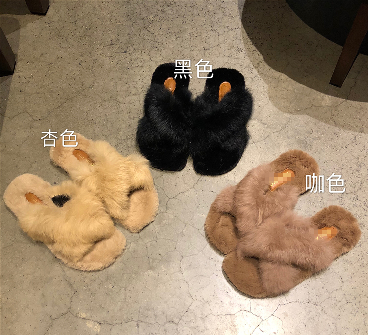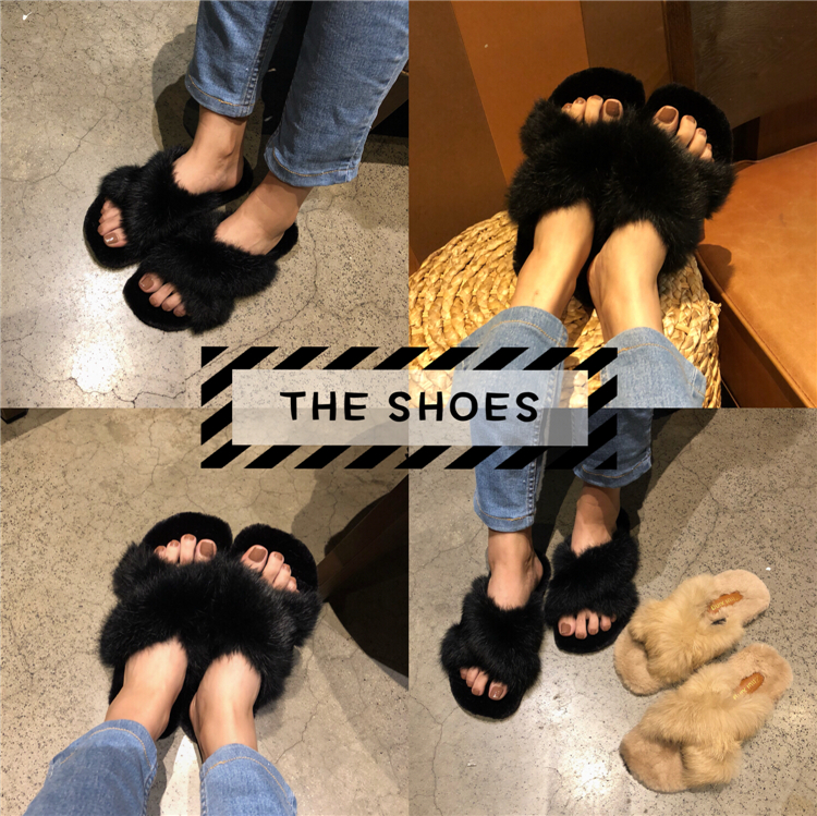 新款韓版交叉毛茸茸外穿網紅毛毛拖鞋時尚百搭復古chic女平底鞋潮