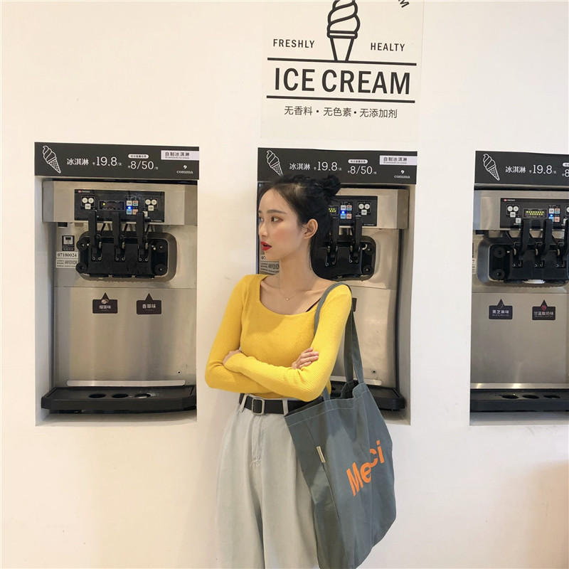 chic早秋毛衣慵懶風針織衫韓版馬卡龍顯白色系百搭打底針織上衣潮