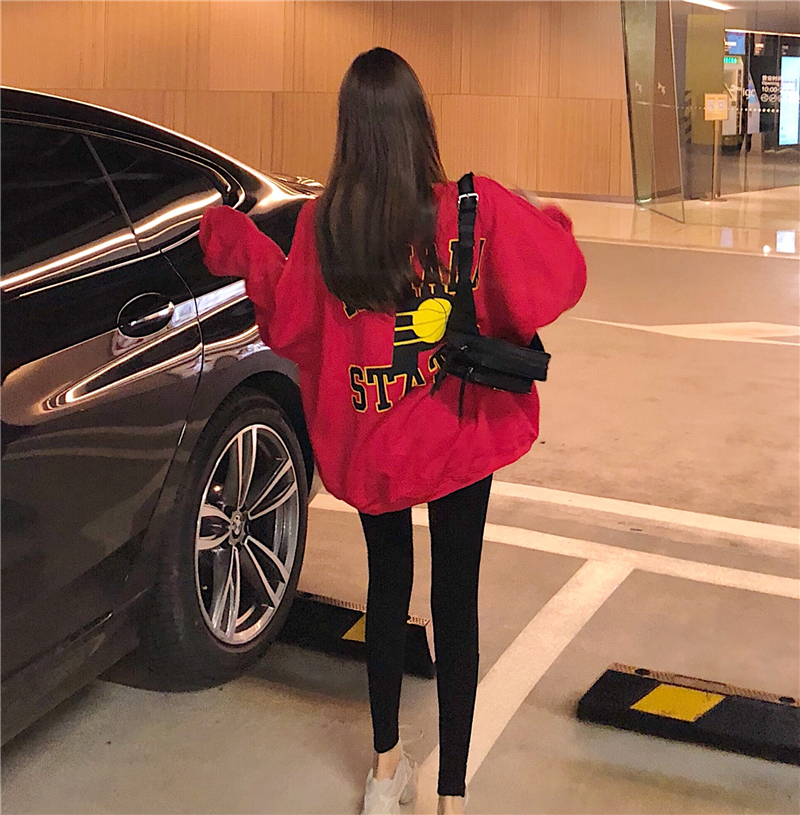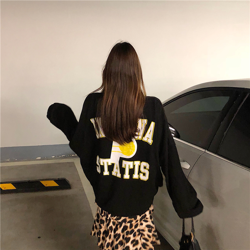 港風薄款衛衣女秋2018新款小高領懶惰風寬松圓領印花字母長袖上衣