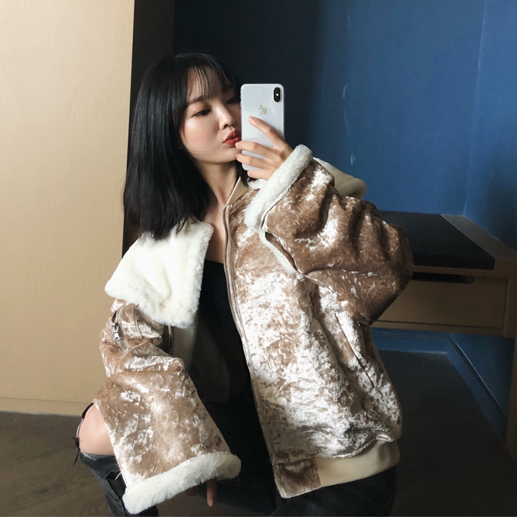 設計感新款冬季時尚韓版百搭寬松絨面毛毛一體加厚外套領子可拆卸