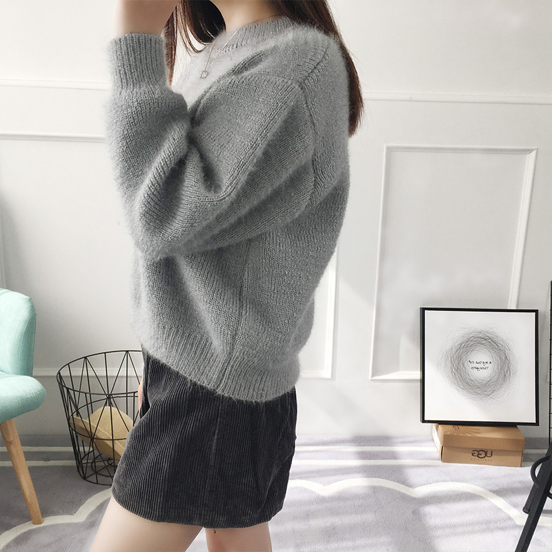/ 套頭毛衣女秋冬韓版短款寬松圓領純色針織衫新款學生外套女裝