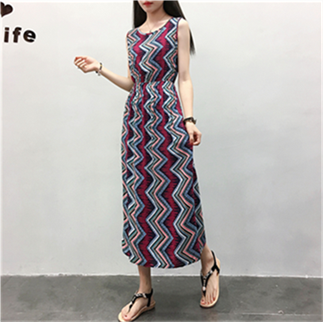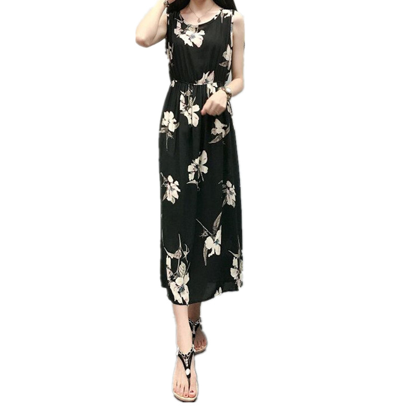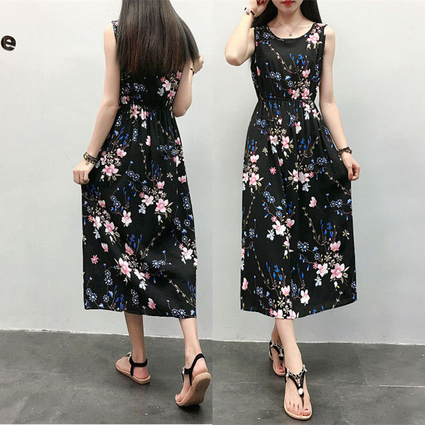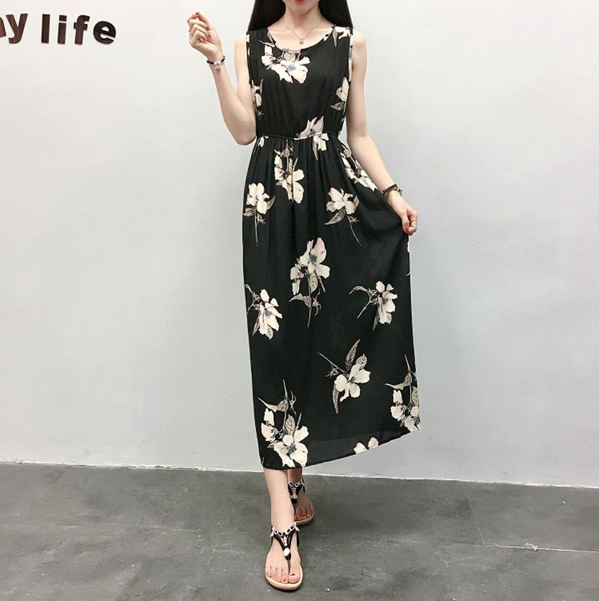 / 棉綢中長款連衣裙女2017夏季新款碎花無袖背心裙大碼顯瘦印花裙子