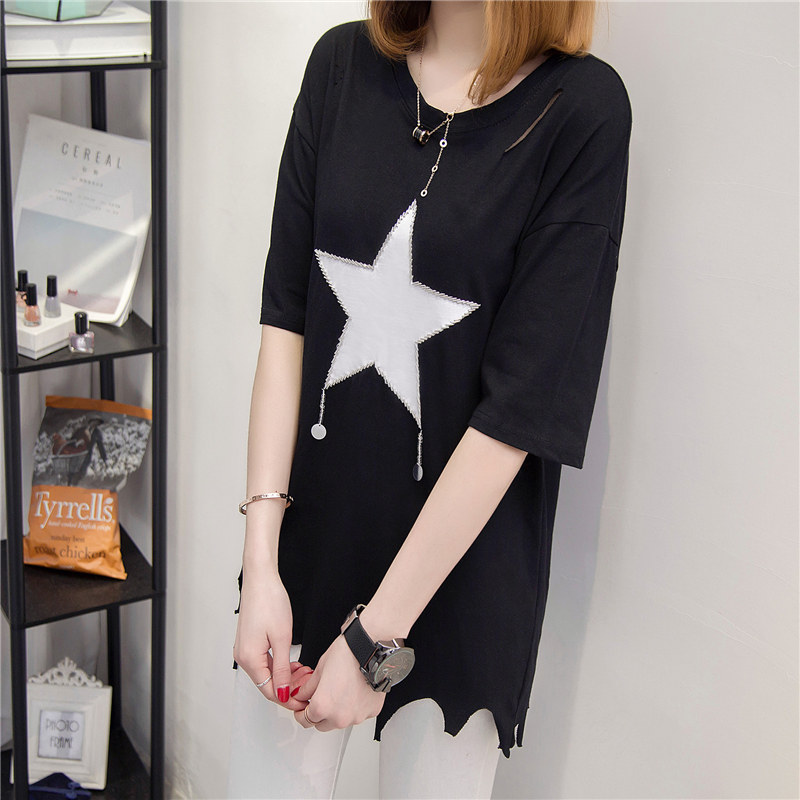 / 女裝春裝新款潮不規則短袖t恤女寬松上衣韓版打底體恤衫百搭