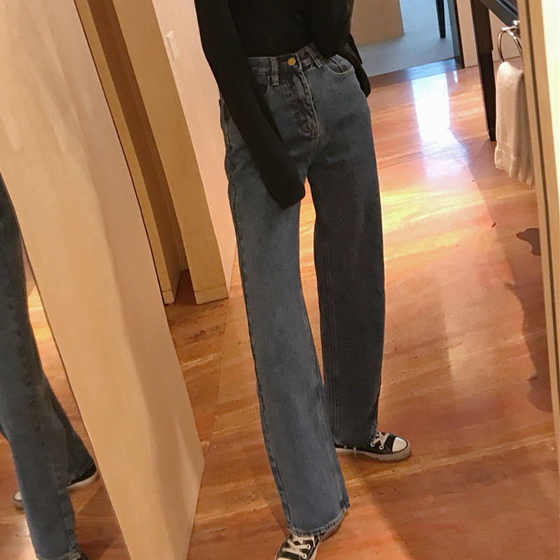 秋冬女裝2018新款復古高腰顯瘦初戀牛仔長褲直筒寬松休閑闊腿褲子
