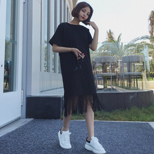 / 流蘇裙子夏款連衣裙學生韓國ulzzang韓版甜美學院風原宿風中長裙