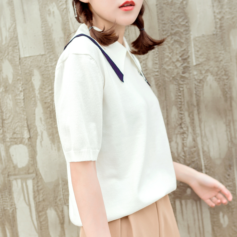 學院風毛針織衫女夏裝新款韓版女裝休閑打底衫短袖撞色上衣潮