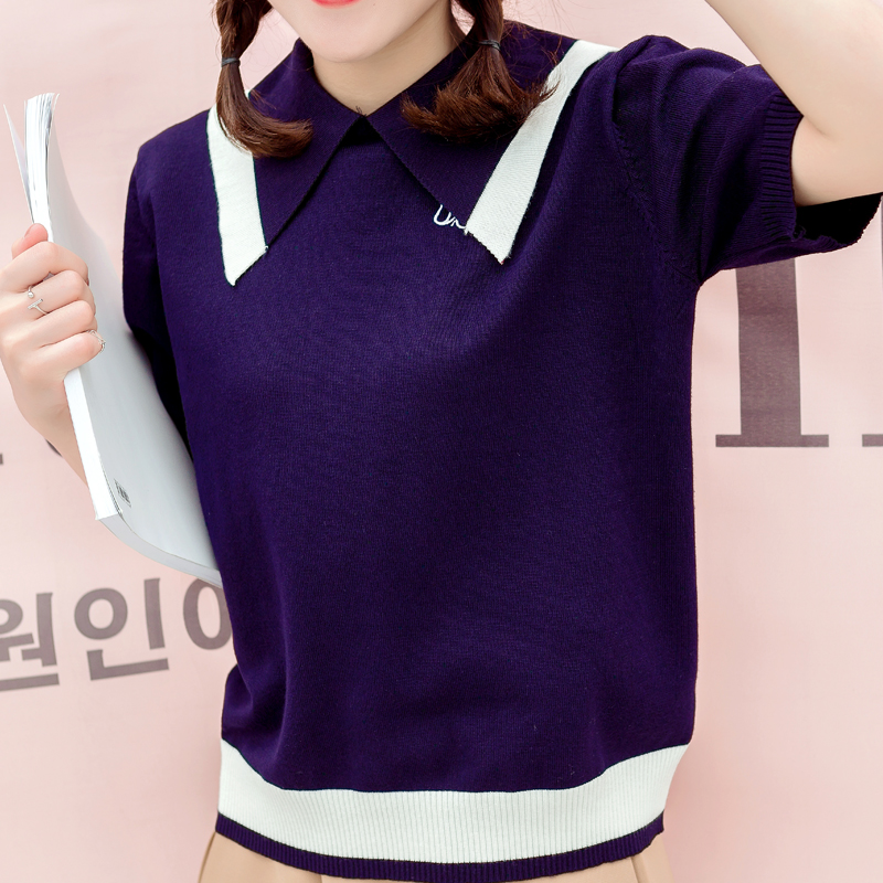 / 學院風毛針織衫女夏裝新款韓版女裝休閑打底衫短袖撞色上衣潮