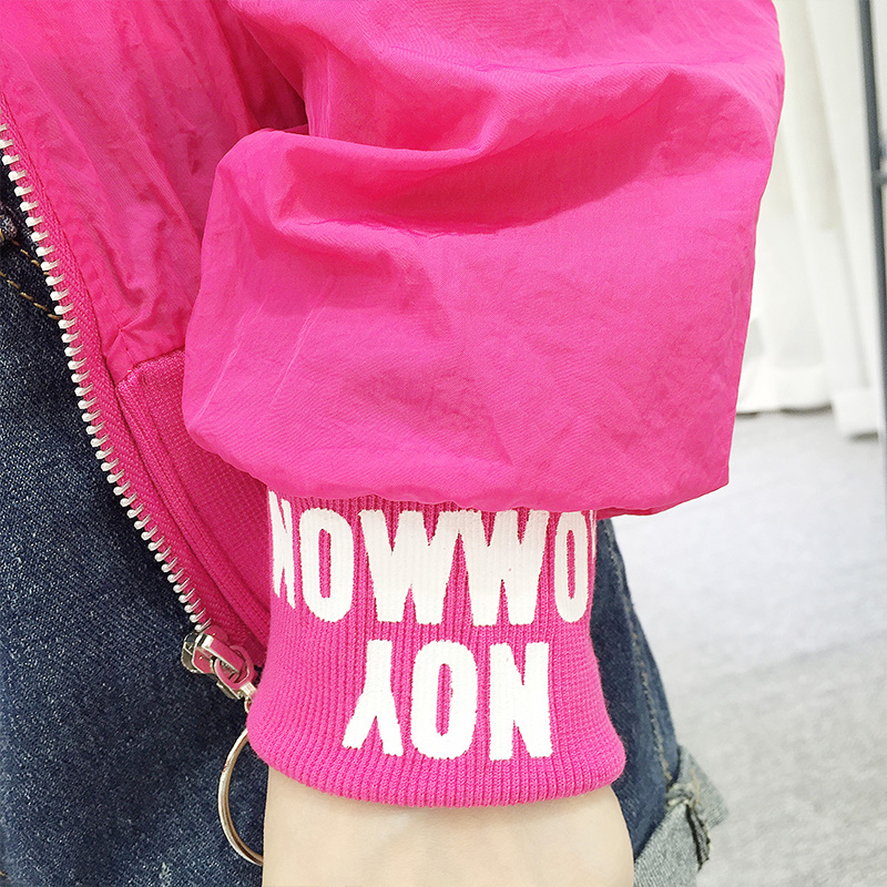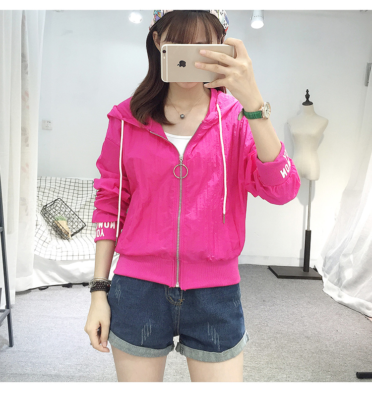 學生BF風寬松字母印花連帽防曬衣女2017夏季新款短款薄外套棒球服