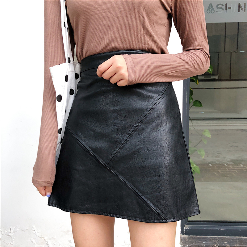 / 女裝韓版修身顯瘦黑色包臀裙子秋裝新款高腰皮短裙氣質A字半身裙