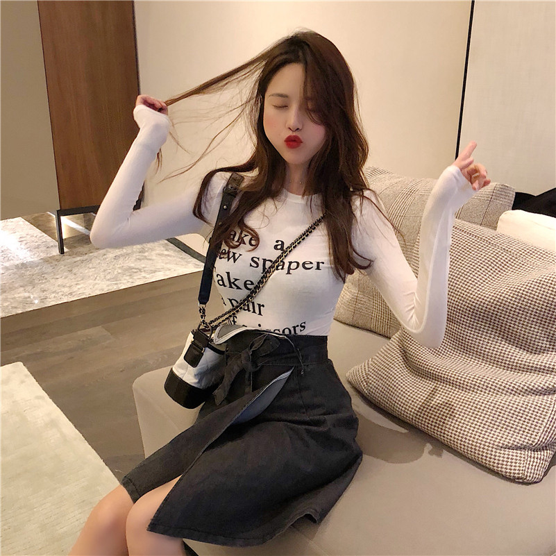 / 2018秋裝新款港味復古chic打底衫上衣女氣質顯瘦百搭印花長袖T恤