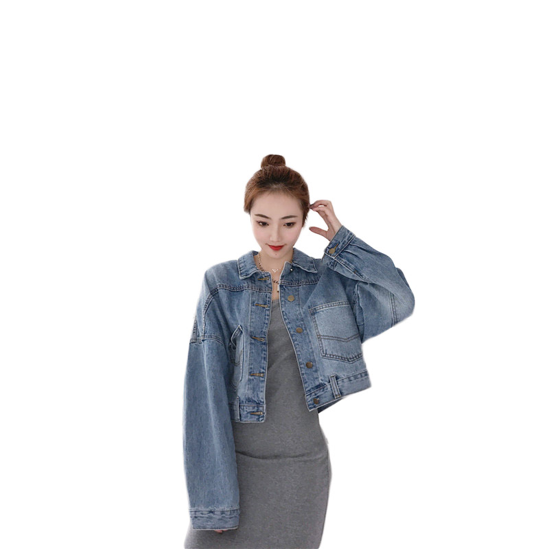 港風怪味少女短款長袖顯瘦牛仔外套女春秋時尚百搭韓版牛仔衣夾克