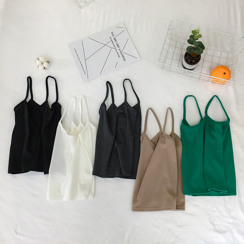 2018夏裝新款韓版修身純色學生時尚打底百搭螺紋短款小吊帶背心女